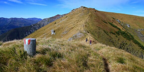 Čeká nás jeden z nejkrásnějších úseků na hřebenovce Apenin. Podzimem nádherně vybarvenou krajinou stoupáme k pyramidě Cima Tauffi (1798 m) a pak perfektně, místy i dost závratně vedeným chodníkem překonáváme několik dalších vrcholů. Nejvyšší vrchol této části hor – 2164 m vysoké Monte Cimone je již na dohled, ale leží v boční rozsoše, a tak není na programu přechodu (stejně to na vrcholu nevypadá nijak povzbudivě – několik vysílačů, stavení).