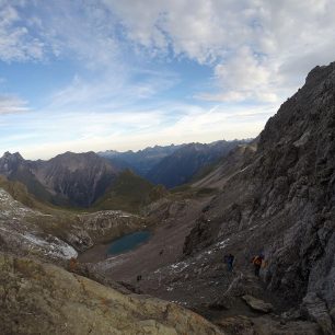 Krátce poté po cestě poprvé zahlédneme Ansbacher Hütte, čekají nás však ještě perné chvilky. Velké opatrnosti je potřeba zejména při přechodu sněhových polí, která se mohou v těchto pasážích udržet klidně celý rok. Bez větších potíží pak dojdeme až na chatu. Sestup je možný pěšky či lanovkou do obce Flirsch nebo přes Fritzhütte do Schnannu.