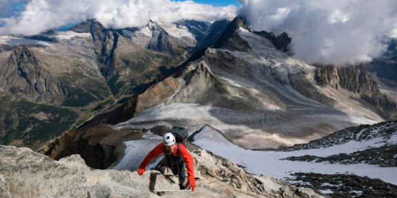 Už výstup od chaty do sedla Bietschjoch vás trochu připraví na to, co vás na této dlouhé túře bude čekat. Zapomeňte na pohodlné stezky nebo vyšlapané dálnice po ledovci. Na tomto kopci se vše točí kolem suťovišť, volných kamenů a až potom, když máte štěstí, i kusu pevné skály. K tomu se na západním hřebeni dostanete až poměrně pozdě. Nejdříve musíte ze sedla překročit krátké úseky rychle mizejících ledovců Bietsch a Nest a poté přes kótu 3408 nastoupit na samotný hřeben. Tam se vine stezička, která má často několik variant a drží se v linii hřebene, tu ovšem odskočí jak do jižní, tak severní stěny. Čím výš se dostáváte, tím začíná být výstup atraktivnější. Nejen lezecky, ale také díky výhledům na Walliské Alpy, které se vám nabídnou na jihu. Dominuje jim pyramida Weisshornu, které sekundují další významné a vysoké vrcholy nad údolími Saas, Matter a Anniviers. Východ slunce na západním hřebeni Bietschhornu nemá chybu.