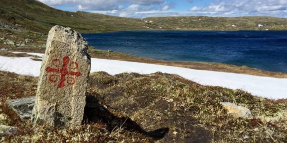 Pokračujeme hornatou a jezernatou oblastí. Cestou se střídají lesní a kamenité cesty. Asi po 70 ukrojených kilometrech nás čeká příjemné zastávka v křesťanském centru Lia Gård, kde nás vítají jako první poutníky toho roku a dostáváme k jídlu sobí guláš.
