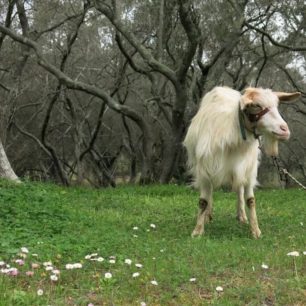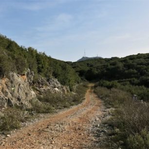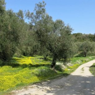 - A druhé místo bylo na cestě po pláži Arkoudilas úplně na jihu, kde je na mapách kousek trasy značený, že vede mořem. Jelikož byl silný vítr a poměrně velké nárazové vlny, tak nám nepřišlo úplně bezpečné tam jít. K místu jsme sice došli, ale nakonec jsme se vrátili a obešli to horní cestou přes olivové háje.