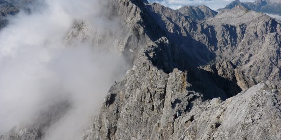 Než se nadějete, budete stát na prostředním vrcholu Mittelspitze (2713 m). Následující delší a také náročnější úsek na jižní vrchol je největším zážitkem této hřebenové túry, který je navíc kořeněný pohledy do neblaze proslulé východní stěny Watzmannu.