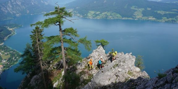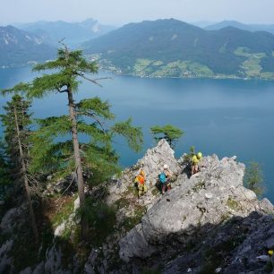 Výhledy na jezero Attersee, které je po Neziderském a Bodamském jezeře největší v Rakousku, vás budou doprovázet celou dobu lezení. Zdejší stejnojmenná ferrata Attersee (D) se hrdě řadí mezi nejkrásnější ferraty v rakouských Alpách. Technicky nejobtížnější klíčový úsek D/E si odbudeme hned na začátku, zbytek poměrně dlouhé ferraty je výrazně lehčí (B/C-C) se dvěma těžšími místy za D. Výstup zakončíme na vrcholu s krkolomným názvem Mahdlgupf (1261 m) a krásnými výhledy.