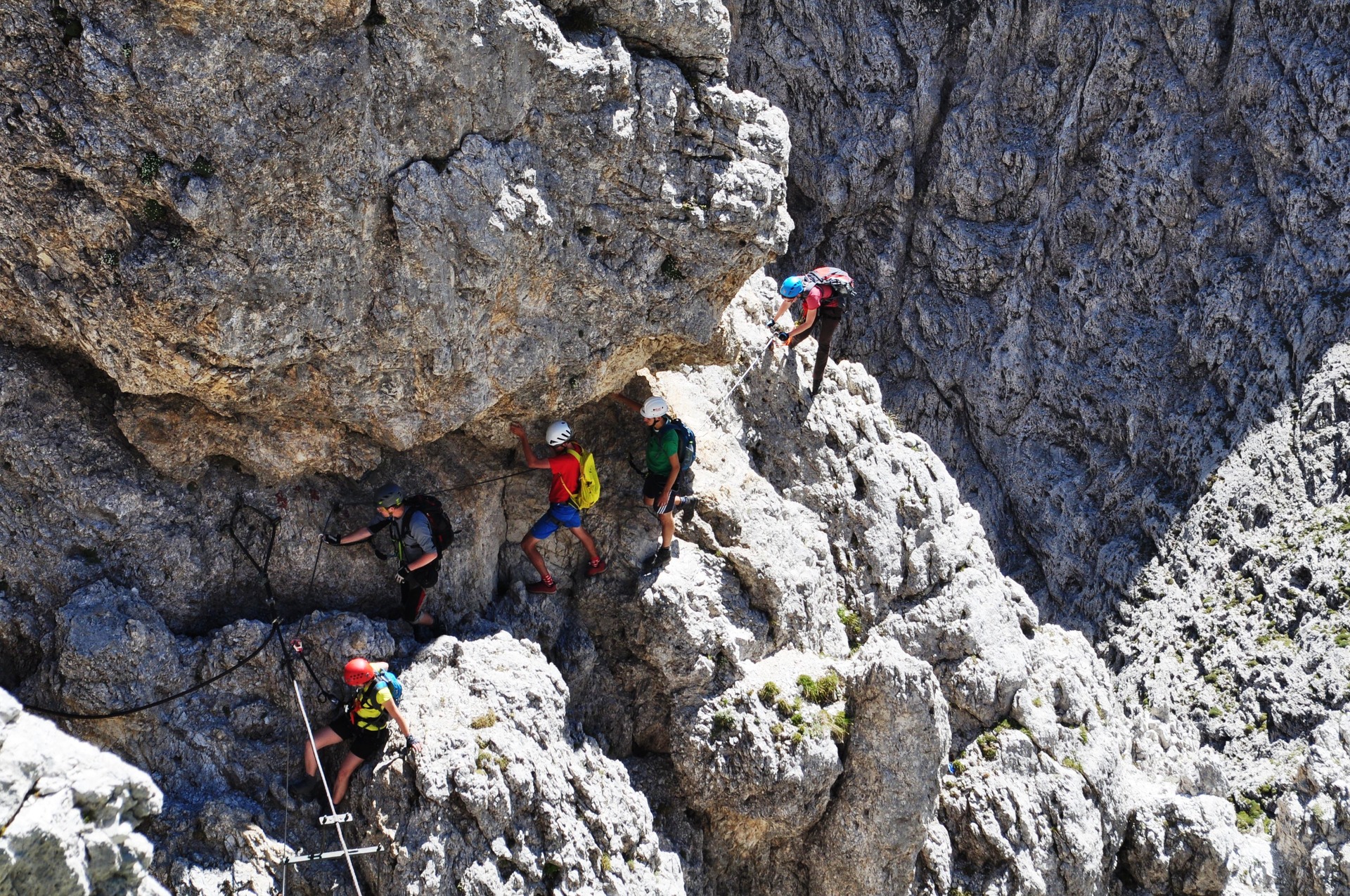 lehké; dlouhá diagonální rampa v severní stěně zajištěná fixními lany