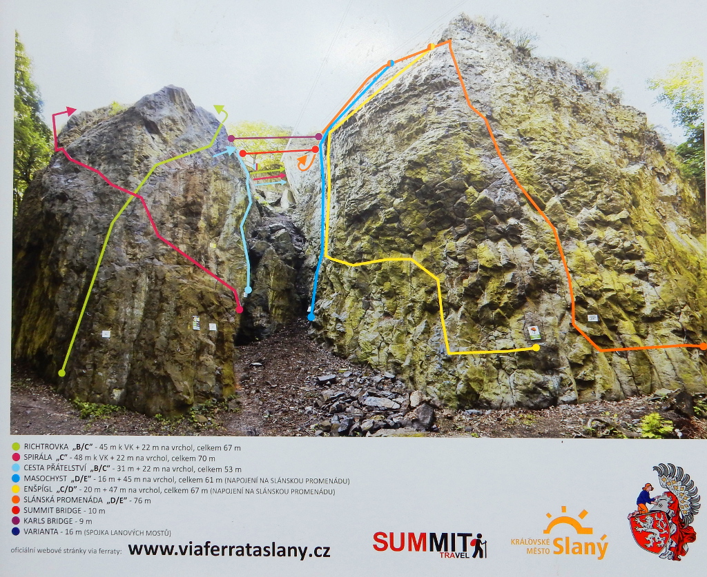 Určitě se tady zabavíte, ale samozřejě nemůžete očekávat, že zážitek bude stený jako třeba v Dolomitech a tamních legendárních zajištěných cestách. Berte to jako přípravu na takovéto celodenní alpské feraty. Kolem celé Slánské hory navíc vede naučná stezka, kterou můžete svůj výlet ještě zpestřit.