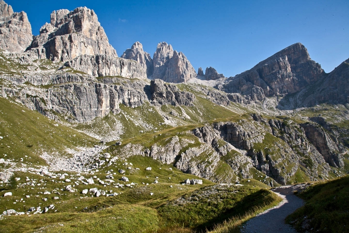 na samotnou zajištěnou cestu ze sedla Bocca degli Armi k chatám Rifugio Pedrotti / Rifugio Tosa (2 496 m n. m.) je potřeba přibližně 4-5 hod.