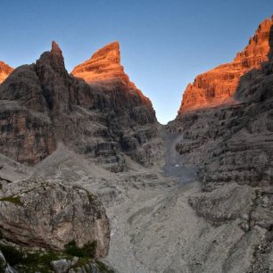 ze sedla Bocca di Brenta lze pokrašovat na další zajištěné cesty Sentiero Brentari a Sentiero dell’Ideale