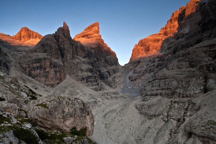 celkový čas túry od chaty Rifugio Vallesinella – chata Rifugio Alimonta – zajištěná cesta Sentiero delle Bocchette Centrale – chata Rifugio Brentei – chata Rifugio Vallesinella: 9-10 hod.