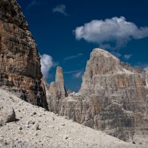 přístup k výchozímu bodu zajištěné cesty u chaty Rifugio Alimonta (2 580 m n. m.):