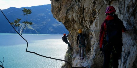 Pašerácká stezka neboli Sentiero Contrabbandieri vede úzkou stezkou ve skalní stěně. Traverzuje nad západním břehem jezera Lago di Garda v podhůří italských Alp.