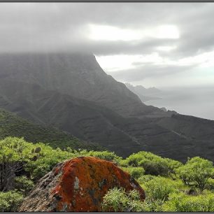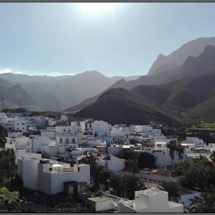 Cesta se krásně klikatí a nám se otevírají krásné výhledy. Asi po hodine dojdeme k rozcestníku pod Montaňa Bibique. Jedna cesta stoupá dále do hor, do parku Tamabada. My se vydáváme po hřebenu po S-90 k vyhlídce Degollada Abejera. U zříceniny Era del Cardon se nám otvírají neuvěřitelné pohledy na drsné pobřežní hory. Dlouho se kocháme pohledy a pak pomalu sestupujeme zpět do městečka Agaete.