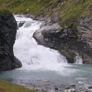 Z horní části doliny Memurudalen sestupujeme podél toku řeky Muru k nádherným kaskádám a peřejím kaňonu, který tu řeka vyhloubila. K chatě dorážíme kolem 16. hodiny, což zavdává