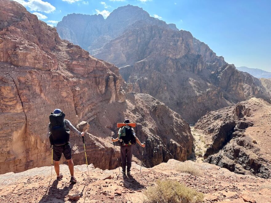 Jednou z nejhezčích částí celé stezky je pasáž z horské vesničky Dana. Cesta vede hlubokými wádí, hned v jednom z prvních se klikatí malá říčka. Nejdřív se ji snažíme přeskakovat, ale po několika hodinách to vzdáváme a užíváme si nezvyklého chladivého pocitu mokrých bot. Jakmile jsme vylezli z kaňonů protkaných palmami, čekali na nás spektakulární výhledy na pouštní krajinu. Po 80 km a čtyřech dnech putování tato sekce trailu končí vstupem do skalního města Malé Petry. Otvírá se před námi perla skalního inženýrství, skvostu biblického významu a neskutečně nádherného novodobého divu světa.