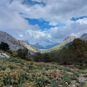 Dopoledne jsem se historickou tramvají dopravila z přístaviště do města Soller. Cesta stojí 7 eur a pěšky by byla poměrně nudná, takže doporučuju. Soller je ideální na doplnění zásob, i sport se tam dá najít. Po malém nákupu a obhlédnutí místního historického centra jsem se již vydala na cestu do hor. Tento den byl asi nejkrásnější z celého treku. Po několika kilometrech se začne stoupat roklí vzhůru podél říčky pramenící v horách. Na konci dubna byla voda jen v nejvýše položené části. Jak jsem se propracovávala vzhůru, tak jsem se postupně mohla kochat jak nádhernými výhledy směrem k Solleru a moři, tak k horám. Tato cesta na člověka dýchne svou svobodou a klidem.