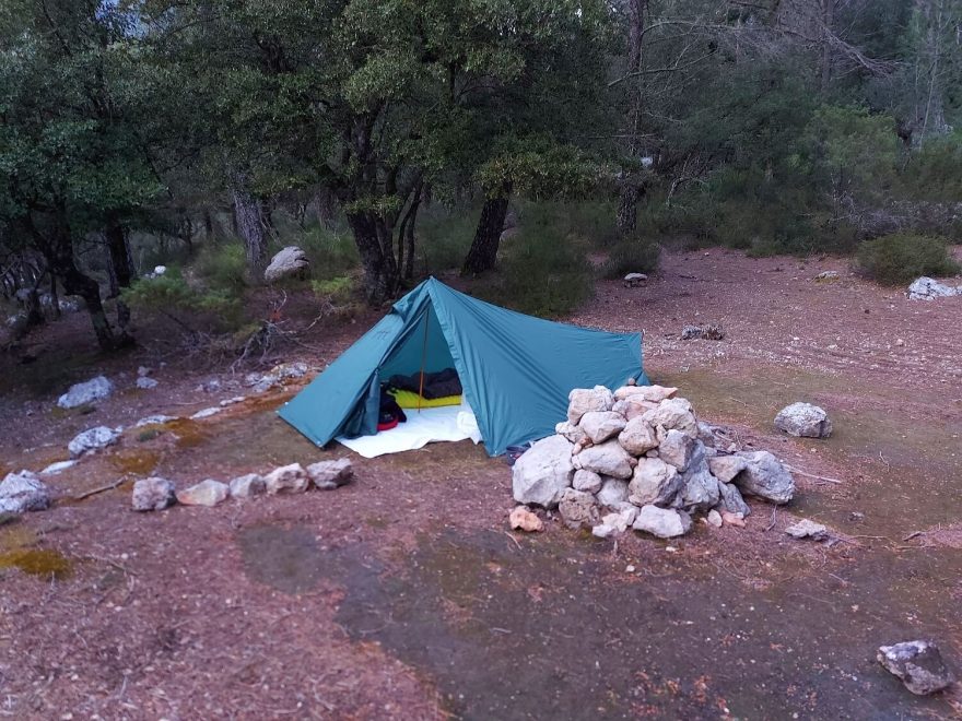 První noc jsem toho moc nenaspala. Byla to moje první noc, kdy jsem spala sama venku vůbec. Takže lehké obavy tam byly. Měla jsem vedle sebe připravený pepřák a také hole, co kdyby náhodou. Když jsem procházela Sant Elmem, tak jsem se ohlížela, jestli mě někdo nesleduje. Než jsem usnula, tak jsem stále poslouchala, jestli někdo nechodí kolem. Prostě takové ty klasické obezřetné manévry zcela neznalé trekerky, která od útlého mládí poslouchá dobré rady, co se může samotné holce stát. Ale protože pršelo a foukalo, což je poměrně hlučné, tak jsem si nakonec vzala špunty do uší a řekla si, děj se vůle boží, potřebuju se aspoň trochu vyspat. Ráno jsem vstávala s dost pyšným pocitem, že jsem to zvládla, nicméně jsem neměla pocit ohrožení ani tuto noc, ani ty další.
