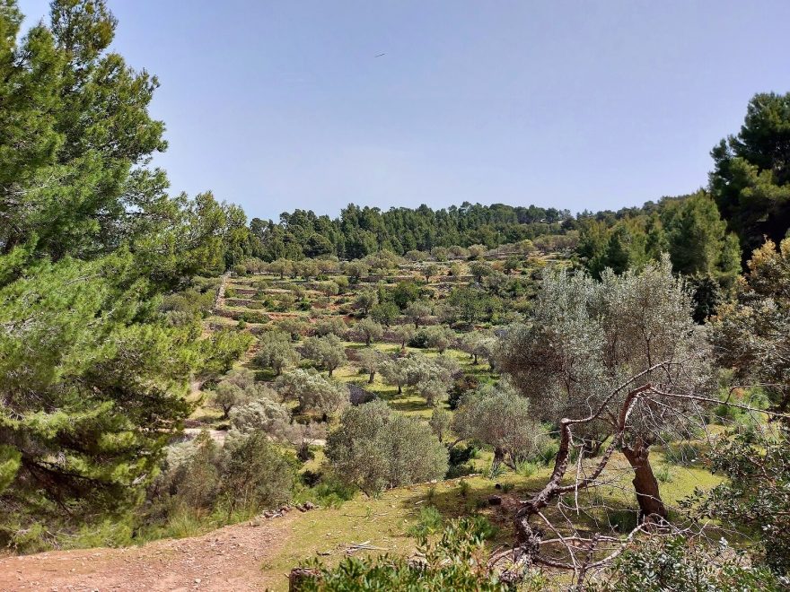 Třetí den vedl hojně mezi olivovými háji. Doporučuji nesestupovat do města Banyalbufar (nic extra tam k vidění není a ušetříte si výškové metry) a jít vrstevnicovou cestou na jih od města (je značená). Jak bylo v Estellenc mrtvo, tak v Esporles bylo konečně živo a potkali jsme nejvíc lidí na jednom místě za celou dosavadní cestu. Supermarket měl otevřeno až do večera a obědo-večeře v restauraci na hlavní třídě neměla chybu. Po větším jídle se sice jde hůř, ale u mně platí že výrazně radostněji, tedy zbytek dne jsem si užila na maximum, i když cesta poměrně intenzivně z Esporles stoupá. Jde se psychedelickým lesem s neuvěřitelně zajímavou atmosférou, kde občas potkáte i bývalé pece na jíl. Spali jsme u turistického přístřešku, který taky vypadal jako pec, takže já si raději postavila tarp vedle. Hned vedle se nachází studna, ale asi ani s filtrem, který jsem s sebou měla, bych ji nepila. Ale na osvěžení unavených nohou to bylo ideální.