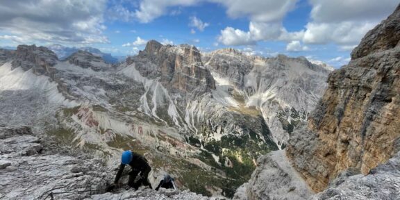 Po dokončení celé cesty ještě nemusíte truchlit, že je konec. Pokud vám stačí síly můžete vystoupat zhruba 250 výškových metrů a po špatné šotolinové cestě se dostat až na samotný vrchol hory Tofana. Pokud ne, tak podejte kolegům ruku se slovy “ČAU! DÍKY” 🙂