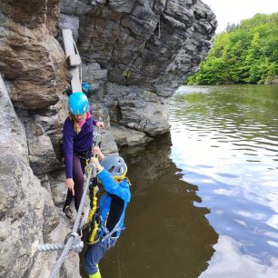 Zpátky k nástupu můžete buď plavat Vltavou nebo to obejít po pěšince nad skalami. Ferata je jednosměrná a nevracejte se tedy po ní, abyste si nepřekáželi s dalšími borci a borkami.