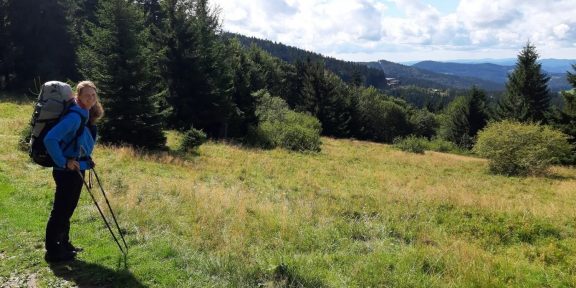 Na první etapu vyrážíme z Dolní Lomné, jako za starých časů (rozumějte před dítětem) poměrně brzy ráno, abychom odpoledne nezmokli. Míříme nejkratší cestou na hřeben, ať si to stoupání odbydeme co nejrychleji. Kilometry ubíhají pomalu, batohy tíží, krásná příroda nám vynahrazuje bolavá ramena a rudnoucí boky od bederního pásu, tělo si musí zvyknout. Syn vše zvládá s lehkostí starého harcovníka, při chůzi sleduje okolí, při pauze objevuje les či dětská hřišťátka na horských chatách. Pomalu nás opouštějí obavy, jak to budeme zvládat. Další dny probíhají již v ustáleném tempu, brzké odchody, zdolávání kilometrů, dlouhé pauzy na odpočinek, oběd a objevování světa, dokončení trasy a volné odpoledne na ubytování se a odpočinek.