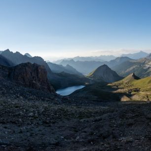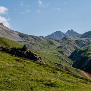 Nedaleko za městem Modane, kde jsme zahájili další podvečerní výstup, se postupně ukazuje krajina tak nečekaně krásná, že jsme si nebyli jistí, jestli jsme se omylem neocitli v dalším z národních parků. Hora Le Grand Séru , vysoká 2 888 m n. m., zubatá a impozantní, se nám postupně ukazovala a pomáhala nám vyšplhat se až do sedla, kde jsme nocovali a odkud jsme se mohli kochat pohledem přímo na ni.