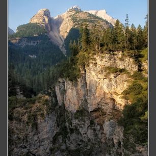 Z dřevěného mostu Ponte Outo nad soutokem řeky Rio Travenanzes s řekou Rio Fanes se otevírá úchvatný pohled na dno propasti s tyrkysově modrou vodou. Obě řeky se zařízly opravdu hluboko do skalního masivu. Stezku lemují rozeklané skály.