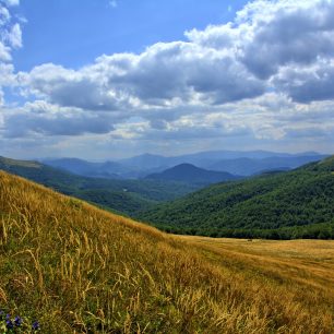Funkci vstupní brány do tohoto kouzelného království trav plní protáhlá Polonina Wetlinska. Jakmile překročíme tok řeky, dobře značená stezka nás vyvede pásmem lesů na otevřené louky vrcholící kótou ve výši 1253 m. Přesně na tomto místě mně při jedné z návštěv přepadla krátká, ale o to vydatnější sněhová bouře. Charakterizovat ten běloučký „polystyrén“ sypoucí se z nebe, jako sníh snad ani nelze. Každopádně po čtvrthodině, než opět na celé čáře zvítězilo slunce, se krajina alespoň na okamžik převlékla do svatebních bílých šatů. Ale skutečně jen na okamžik. Po chvíli je opět vše zelené, pouze temný obzor se vzdalující se bouří připomíná, jak vrtkavé zde vládne počasí a jak prudké mohou být jeho změny.
