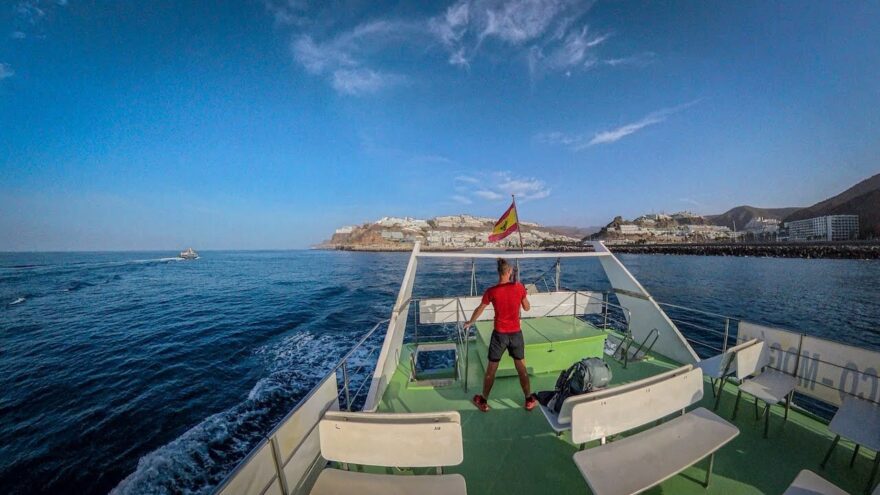 Blížím se k závěru cesty, tak ze zvědavosti koukám na Airbnb, kde by se dala v následujících dnech složit hlava, a hlavně si vymýt písek z míst, kam ani kanárské slunce nesvítí. Všímám si nabídky, která slibuje zážitek, jaký do smrti nezapomeneš. Potvrzení o rezervaci za chvíli doráží na e-mail. Ale nepředbíhejme. Na další den jsem si naplánoval zpestření – plavbu trajektem z Puerto Rico do Arguineguín. I stalo se. Tato část pobřeží je hodně industriální, takže plavba žádné wow momenty nepřináší. Ale to nevadí, upírám se na onen zážitek z Airbnb. Cesta po pobřeží do Pasito Blanco vede přes několik dalších pláží, koupu se klasicky s holým zadkem a těším se na večer.