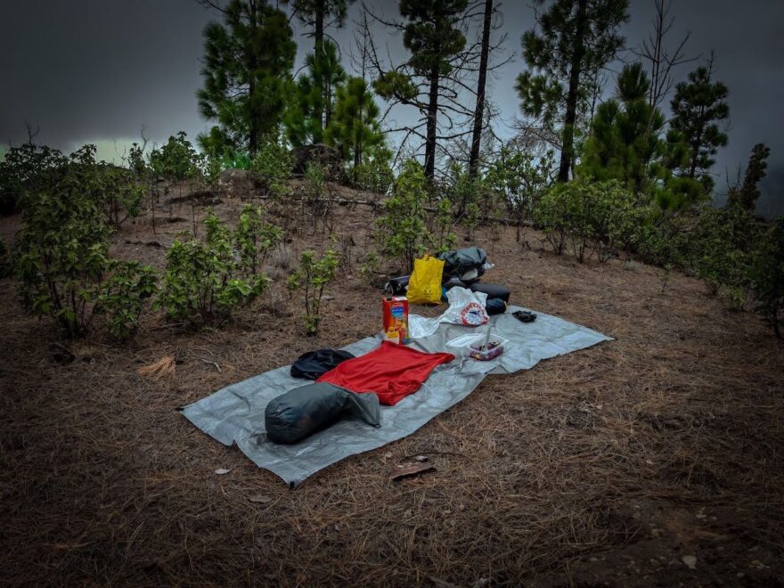 Bonusem jsou super místa na spaní, vhodných plácků je tady všude plno. Ale jsem pořád v nadmořských výškách nad 1200 metrů, noci jsou chladné. Ani v prosinci noční teploty dole u pobřeží neklesají pod 15 stupňů, tady v horách ale vylezou sotva nad 5. Teplejší spacák s sebou. Je tu i docela vlhko a mlžno, počítej s lehkou kondenzací.