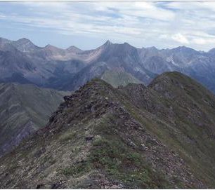 Nad srubem se ale cesta definitivně ztrácí a nás čeká prudké stoupání v trávě a volném kamení na hřeben. Začínají se honit mraky a zvedá se vítr. Říkám si: „Kurňa, tudy šly ty děti?!“. Najednou jsem na vrcholu hřebene. Dál už se stoupat nedá, výš to prostě nejde. Šířka hřebene ale neodpovídá informaci v mapě. Při troše dobré vůle a dostatečné kloubní pohyblivosti by se na něj dalo obkročmo sednout. A opět se mi vrací ta stejná otázka: „Kudy šly ty děti?“ Jasně, že tudy, jinudy to moc nejde a ty děti mají famózní fyzičku. Nechápu. Rus je tedy opravdu člověk, který vydrží snad úplně všechno.