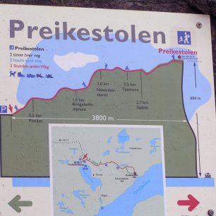 Sestup z Preikestolen k parkovišti vede stejnou cestou zpět. Na zpáteční cestu si opět vyhraďte cca 2 hodiny.