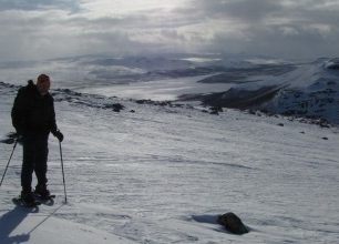 Z malého parkoviště vzdáleného několik kilometrů od centra vesnice vyrážíme na sněžnicích březovým lesíkem. V zimě je cesta téměř neznatelná, takže volíme vlastní směr mezi břízkami, případně se snažíme držet staré stopy lyží nebo sněžnic, doufajíc, že chodec před námi znal správný směr. Výše se napojíme na stezku vedoucí dlouhým traverzem přímo z vesnice (je možno vyrazit přímo od Visitor Centra, většinou je v sezóně cesta prošláplá). Po ní za chvíli dojdeme k rozcestníku a odtud již pokračujeme strmě vzhůru. V létě jsou zde pro turisty připraveny dřevěné schody, v zimě jsou téměř zaváté, takže strmým svahem šplháme vedle nich. Toto je nejstrmější úsek celého výstupu, pokud je tvrdý firn, tak je tato část bez pomůcek (mačky, nesmeky, sněžnice s hroty, lyže s pásy), v podstatě neschůdná. Dále pokračujeme buď po hřebínku, nebo v závětří údolími, terén je členitější, než by člověk očekával. Vodítkem je vysílací věž, od které ještě kousek pokračujeme na samotný vrchol Saana. Výhled je odsud parádní, ale v zimě není mnohdy na kochání příliš času, teplota klesá nízko pod nulu (na vrcholku je i teploměr, tak se můžete přesvědčit 🙂 ), a silný vítr výrazně snižuje pocitovou teplotu. U o něco níže položené vysílací stanice se dá maximálně trošku schovat v závětří budovy, ale není zde žádná místnost pro turisty, takže v zimě a větru nezbývá, než pokračovat v sestupu. Ten může být i zábavný, dá se na mnoha místech vyřádit v navátém sněhu. Vracíme se stejnou trasou, ve strmé části je opět potřeba opatrnosti.