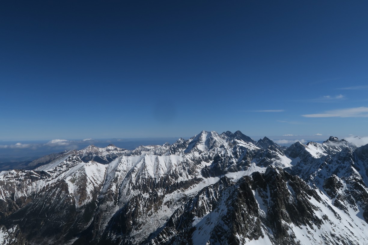 Od vrcholového kříže dominují západnímu výhledu masiv Rysů a Mengusovských štítů, jihovýchodním směrem se nachází nejvyšší vrchol Tater Gerlach a na východní straně se odhalují v plné kráse Lomnický a Ladový štít.