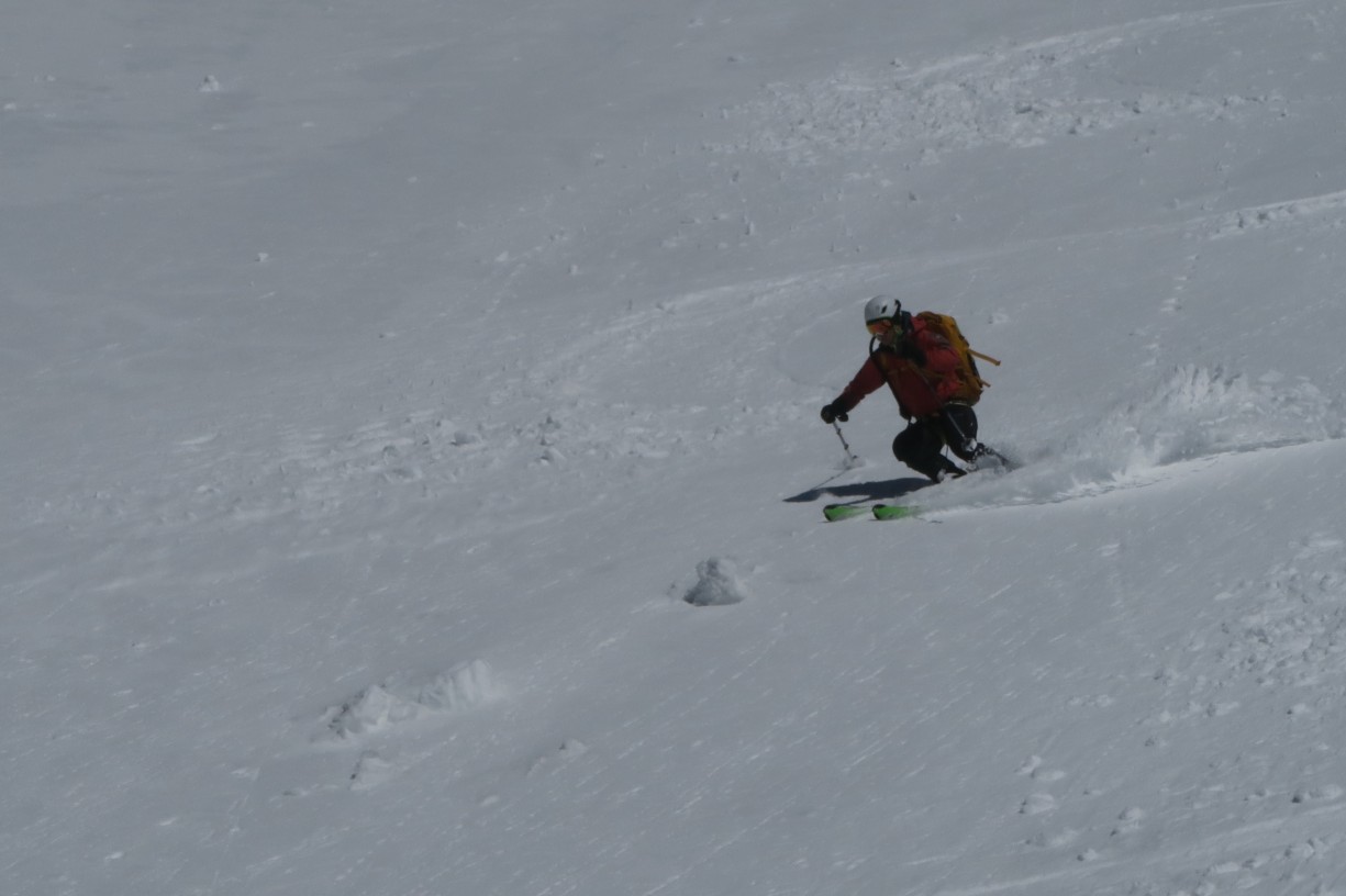 Sestup vede přímo přes centrální žlab Vysoké a Dračí sedlo do doliny Zlomisk a na Popradské pleso. Pokud máte lyže, jste za půl hodiny na pivě na Popradském, pěšky podle podmínek o něco déle.