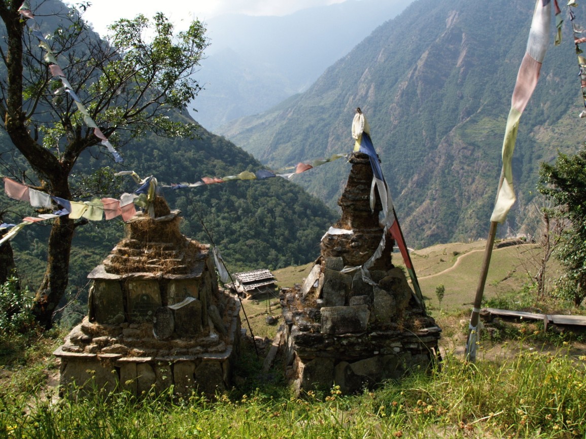Přecházíme kolem buddhistického kláštera. Proti jasně modré obloze se třepotají modlitební praporky za kterými bělostně září zasněžené šestky, jimž zapadající slunce postupně mění barvu. Ve stopách scházejících jaků vstupujeme do vesničky tvořené kamennými domky s barevnými okny a střechami. Jdeme kolem zídek a čortenů. Roztáčíme modlitební mlýnek. Jsme u cile Rolwalingu. Konečně dáváme den volna, abychom následující den mohli vyrazit do sedla Renjo pass, odkud jsou jedny z nejkrásnějších pohledů na himalájské velikány.