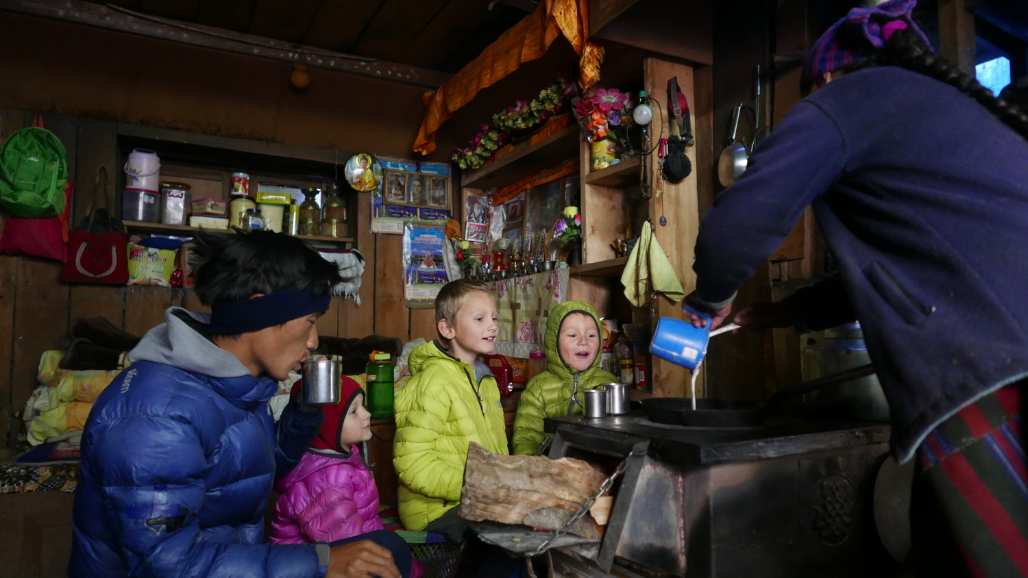 V noci mrzne, náladu všech roztaví až první paprsky slunce a čokoláda od Nepálských policistů na výletě. Naše děti jsou velkou atrakcí. Tříleté holčičky, předškolní raubíři a sedmiletí hubeňouři zde moc často s batůžky neběhají, navíc s úsměvem, bojovým pokřikem a bambusovou holí. Jsou úžasní, jsou naši a jsou normální! Pozdravné štípání Nepálců do tváří už je za chvíli nebaví.
