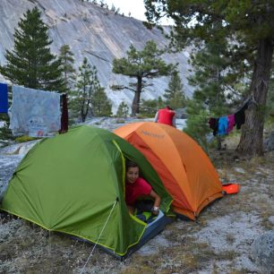 Trek v Yosemitech je pro milovníky hor splněným snem. Během dámské jízdy Kalifornií tedy třetí nejstarší národní park Spojených států figuroval na seznamu „must see“. Stejně tak je tomu pro další asi čtyři miliony turistů, kteří park každoročně navštíví. Valná většina z nich však zamíří na jeden den do věhlasného 13 km dlouhého údolí Yosemite Valley, které však tvoří pouhé 1 % z celkové rozlohy parku, zapsaného na seznamu světového dědictví UNESCO. Náš plán byl tedy zamířit do části z těch zbylých 99 %. Zatímco horní partie na východě parku v okolí Tuolumne Meadows pokrývají alpinské louky, západní svahy eroze vymodelovala do ostře zařízlých kaňonů a údolí, nad nimiž se majestátně tyčí impozantní skalní monolity. Scenerie žulových dómů doplňují průzračné říčky, temně modrá jezera a bílé stuhy vodopádů, spadající v kaskádách několik set metrů až do údolí. Nejlepším způsobem, jak si vychutnat krásu nedotčené krajiny, je opustit pohodlí pronajatého auta a na pár dní zamířit do nitra divoké přírody, která je domovem medvědů, kojotů, pum, dravých ptáků či roztomilých svišťů.