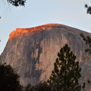 Dál po proudu se řeka Merced vlévá do širokého údolí Little Yosemite Valley. Vrcholy nad námi mají zvláštní tvary – žulové masivy tvoří jakési skalní kupole, ta nejznámější z nich – Half Dome je v půli uříznutá a ční nad údolím svou kolmou několikasetmetrovou skalní stěnou. Právě v překladu Poloviční dóm je jedním z taháků Yosemite Valley, spatřit ho chce zkrátka každý. Také my se pomalu blížíme k turistické Mekce Yosemit a skupinky jednodenních turistů houstnou. Nejvíce „selfíčkářů“ potkáváme na vyhlídce nad vodopádem Nevada Fall, jímž řeka Merced padá do 180 m hluboké rokle a následně dalším vodopádem Vernal na dno Yosemitského údolí. My obcházíme svahy Yosemite Valley po trase Panorama Trail a kocháme se bočními výhledy na slavný Half Dome. Poslední kemp v divočině stavíme po dnešním patnáctikilometrovém pochodu kousek proti proudu řeky Illilouette Creek (v okolí Yosemite Valley platí omezení pro nocování).