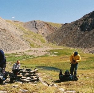 Viktor nás vysazuje asi dva kilometry před soutokem řek Dželo a Taltura a ukazuje nám zkratku do doliny Dželo. V dolině Dželo, asi 7 kilometrů od nás, se dá prý pěkně stanovat. Je tam most přes řeku a jurta. Tam nás prý může vyzvednout.