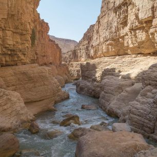 Průchod větší částí jednoho z nejdelších jordánských kaňonů s mnoha termálními prameny