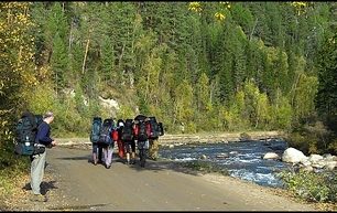 Následuje sice monotónní, ale na přírodní krásy nádherná, typicky sibiřská túra. Cesta se probíjí bujnou tajgou stále v blízkosti bouřlivé řeky Levyj Šumak a má i přes svůj jasný průběh punc skutečného asijského dobrodružství. Na přítomnost pramenů Šumak nás paradoxně upozorní až hukot motorů vrtulníku, který odtud právě odlétá. První stopy civilizace po třech dnech. Přibývá chatrných můstků přes boční přítoky řeky a objevují se první stavení. Dřevěných srubů, kterých je rozseto v lesích kolem Šumaku, je několik desítek a stačí si jen vybrat. Takřka hned po našem příchodu nás navštíví příjemný chlapík a zasype nás množstvím informací co, kde a jak. Je již po sezóně a tak je nocleh v chatě zadarmo, dříví se kolem válí hromady a tak za chvíli stoupá z komínu kouř a příjemná „traperská“ atmosféra dostupuje svého vrcholu.