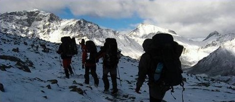 Ani tak se nejedná o snadnou záležitost. Kde byla jasná pěšina leží nyní závěje sněhu, nejtvrdším oříškem je nalezení a dosažení sedla Šumak. Jedná se o regulérní zimní túru se vším všudy. Na druhé straně to má i svůj pozitivní rozměr. Bílé hory, které se tu a tam noří z temných mraků, mají pojednou zcela jiný rozměr. Travnaté a suťové hřebeny se rázem změnily v takřka himálajské obry a hory vůbec v ničem nepřipomínají tu takřka idylickou krajinu na počátku treku. Kritický bod přechodu – sedlo Šumak je však nakonec překonán, ale že by následující nocleh při mínus 15 stupních byl nějakým kýženým vysvobozením, tak to ani náhodou. Nejhorším okamžikem je pak mimo ranního „polámání“ stanu do skladného tvaru, sestup ledovou klouzačkou do údolí Eche-Ger a především „amputační“ brody několika potoků, neboť přeskoky po zmrzlých, jako sklo hladkých kamenech nejsou reálné. Naštěstí počasí se mění, studené sibiřské slunce poráží mraky na body a kolem se obnažují horští velikáni v celé své zimní kráse. Závěrečný přechod tundrou je již jen zelenou tečkou za parádním týdenním trekem.