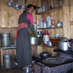 Při návštěvě jednoho místního stavení jsme byli pohoštěni tradičním tibetským čajem. Dost jsem zíral, když máma vytáhla elektrický mixér a čaj s mlékem, máslem a solí dokonale zamíchala! A dětičky? Ty si v televizi naladily čínské kreslené pohádky! Rychlost pokroku je opravdu ohromující. K čaji jsme ještě dostali tradiční tibetské jídlo tsampu. Mouku, kterou jí místní s hroudou másla.