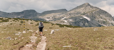 Otevřený hřeben Rily je často sužován silným větrem, mlhou či jinými rozmary počasí, které moc turistů nemá v oblibě, ale nezbývá než doufat, že právě v náš den se všechno umoudří a modravá obloha bude našemu tempu udávat tón. Dlouze, a na závěr dosti strmě, vystoupáme na výrazný vrcholek Kovač (2634 m n. m.), z nějž se opět otevřou krásné výhledy, tentokráte na stezku ubíhající jižním směrem, kam jdeme. Ta se line otevřenými planinami, vysoko nad vším děním v Bulharsku, při troše štěstí lze pohladit i pasoucího se koně. Z Kovače (2634 m n. m.) stezka klesá prudce dolů do velkého „sedla“ nad potůčky tekoucími širokým údolím severozápadním směrem do soustavy menších jezírek a Kovačka Ezera. V tomto místě se výrazná a vyšlapaná pěšina červené turistické značky stáčí západním směrem a pozvolna „putuje“ dále (cestou lze spatřit na severním horizontu Musalu (2925 m n. m.)), míjí stěny Stražnika (2469 m n. m.) a Lopatiški Vrchu (2530 m n. m.) a dochází až k závětrnému místu s rozcestníkem s modrou turistickou značkou spadající na jih hluboko k horské chatě Semkovo, která je jednou z „únikových variant“, respektive přístupových cest na hřeben.