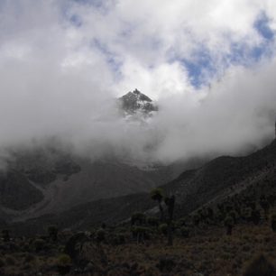 Skalnatá pětitisícovka Mt. Keňa láká svým rozeklaným vzhledem a několika vrcholy k výstupům snad ještě více než nudně oblé Kilimadžáro.