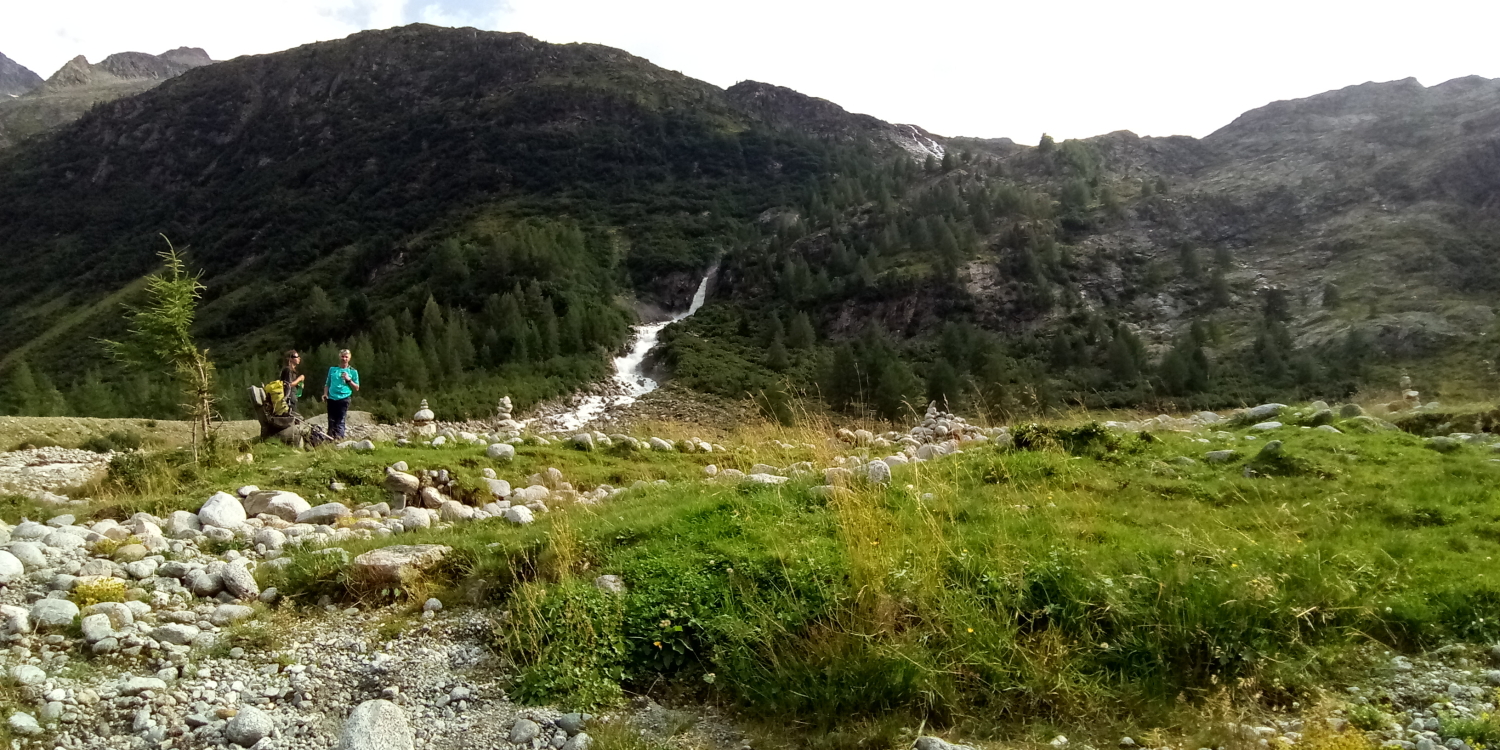 Odtud musíte již pěšky až ke stanici nákladní lanovky. Od ní přejdete řeku a začnete strmě stoupat až k Alte Prager Hütte, která je v rekonstrukci. Po cestě je několik možností doplnit vodu, proto se s ní zbytečně netahejte. Celkově vám zabere nástup na chatu Neue Prager Hütte (2782 m) 4–5 hodin. Doporučuji si chatu rezervovat.