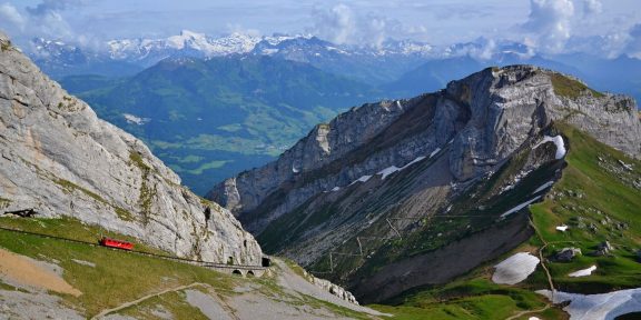 Hora Pilatus (2132 m) se tyčí na jih od historického centra Lucernu v podhůří Alp. Asi každého uchvátí výhledem na rozlehlou hladinu Lucernského jezera na jedné straně, zatímco jižnímu horizontu dominuje zaledněná hradba Bernských a Urnských Alp včetně třítisícového Titlisu. Když na scénu vstoupí ještě typicky červený vagonek horské železnice, máte rázem pocit, že jste se ocitli v reklamě na Švýcarsko. Zubačka na Pilatus je však zajímavá i z jiného než estetického hlediska, drží dokonce jeden světový unikát. S maximálním sklonem 48 % se jedná o nejstrmější ozubnicovou dráhu světa!