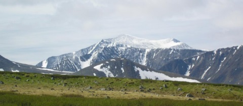 Stoupáme nahoru po ohromných balvanech na náhorní rovinu, kterou Rusové nazývají „plató“ a nikde není nic než balvany velké i malé a chůze je po nich docela drsná, hlavně proto že už zase začíná pršet, nicméně vrchol je vidět a jdeme dál. Zítra to může být ještě horší. Kameny nepříjemně kloužou a 4 km se zdají delší než jsme čekali. Nicméně po chvíli začínají sněhová pole, která někdy cestu zlepší alespoň tím, že přikryjí balvany. Jak se však člověk propadne, je to na zlomení nohy. Nervózně sleduji vršek a trochu lituji, že jsme včera možná měli jít déle, abychom tu byli dřív, ale už s tím nejde nic dělat. Rveme se nahoru, kolem otravují všudypřítomní komáři a nadáváme si, proč nesedíme doma někde u talíře s gulášem.