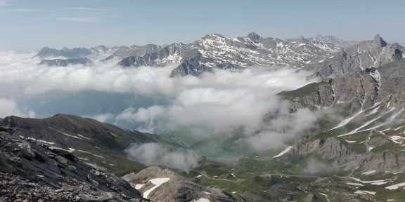 Vyjedeme auty na parkoviště pod Col Agnel a jdeme do sedla Col Vieux. Odtud stoupáme k sněhovému poli na úpatí Pain de Sucre. Po jeho přechodu začíná samotný výstup na třítisícovku Pain de Sucre. I když se hora z dáli vypínala majestátně, mysleli jsme, že to bude hračka… Jenže po deseti minutách jsme se dostali na strmý svah plný uvolněných kamenných desek a tak jsme místy museli na čtyři. Asi hodinový výstup ale stál to za to. Výhledy z vrcholu byly díky počasí nádherné na všechny strany. Sestup dolů jsme absolvovali po jiné cestě, která byla daleko lepší a bezpečnější. Ale stejně končila sněhovým polem na severní straně hory. Sešli jsme zpět do sedla a po odpočinku náš trek pak pokračoval po dalším sněhovém poli ke krásnému jezeru Foréant, v němž ještě plula ledová kra. Dále jsme se vydali k Lac Égorgéou a následně sestoupili údolím podle řeky Guil do vesničky L´Échalp.