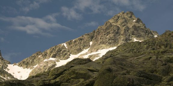 Na neskutečně modré hladině plavou ještě kry ledu, okolní rokle a žleby štítů jsou sevřeny sněhem.Dominantou kotliny je tak trochu hrozivá pyramida nejvyššího vrcholu Almanzor. Prvovýstup na tento 2591 m vysoký štít je dílem jistého Gonzaleze de Amezua a Jose Ibriána (z r.1899), první zimní výstup pak pochází z r.1903. Také dnes to vypadá na zimní výstup. Výrazný kuloár směřující do sedla Portilla de Crampon, dělící od sebe oba vrcholky zubu Almanzor, je vyplněn těžkým a mokrým sněhem. Sklon svahu kolem 45° také nevěstí nic dobrého, ale jinudy to nejde. A tak zatímco já se s přáteli vydávám na protější impozantní horu Morezón (2393 m), odkud si slibuji skvělé výhledy, dva z nás se vydávají do boje se sněhem a strmým svahem. Při normálních podmínkách vede od chaty na vrchol snadný, zhruba tříhodinový výstup.