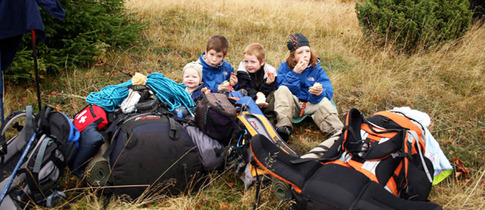 Ty tři kilometry byly však hodně tvrdé. Ve sněhu jsme stoupali do prudkého svahu na horu na hřeben. Přestože sluníčko vesele svítilo, my jsme mrzli a vzdorovali silnému ledovému větru. Nesli jsme klukům batůžky a oni byli na oplátku neskutečně stateční, i když někdy se slzami v očích. Na jižní straně hřebene jsme konečně byli chráněni proti nemilosrdnému severáku. Asi v tisíci metrech nad mořem se ztratil i sníh. Jako mávnutím kouzelného proutku stojíme na jarní prosluněné louce.